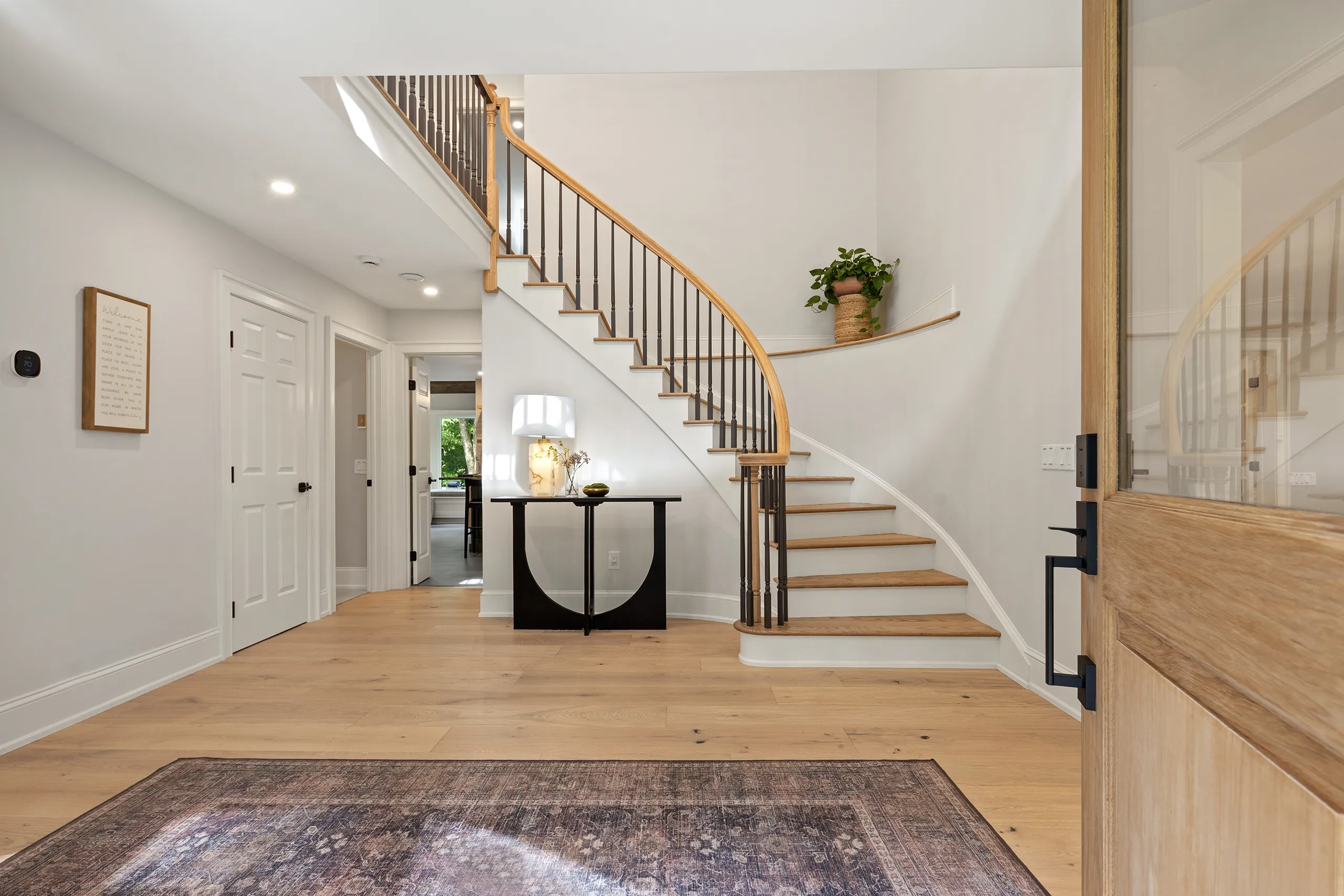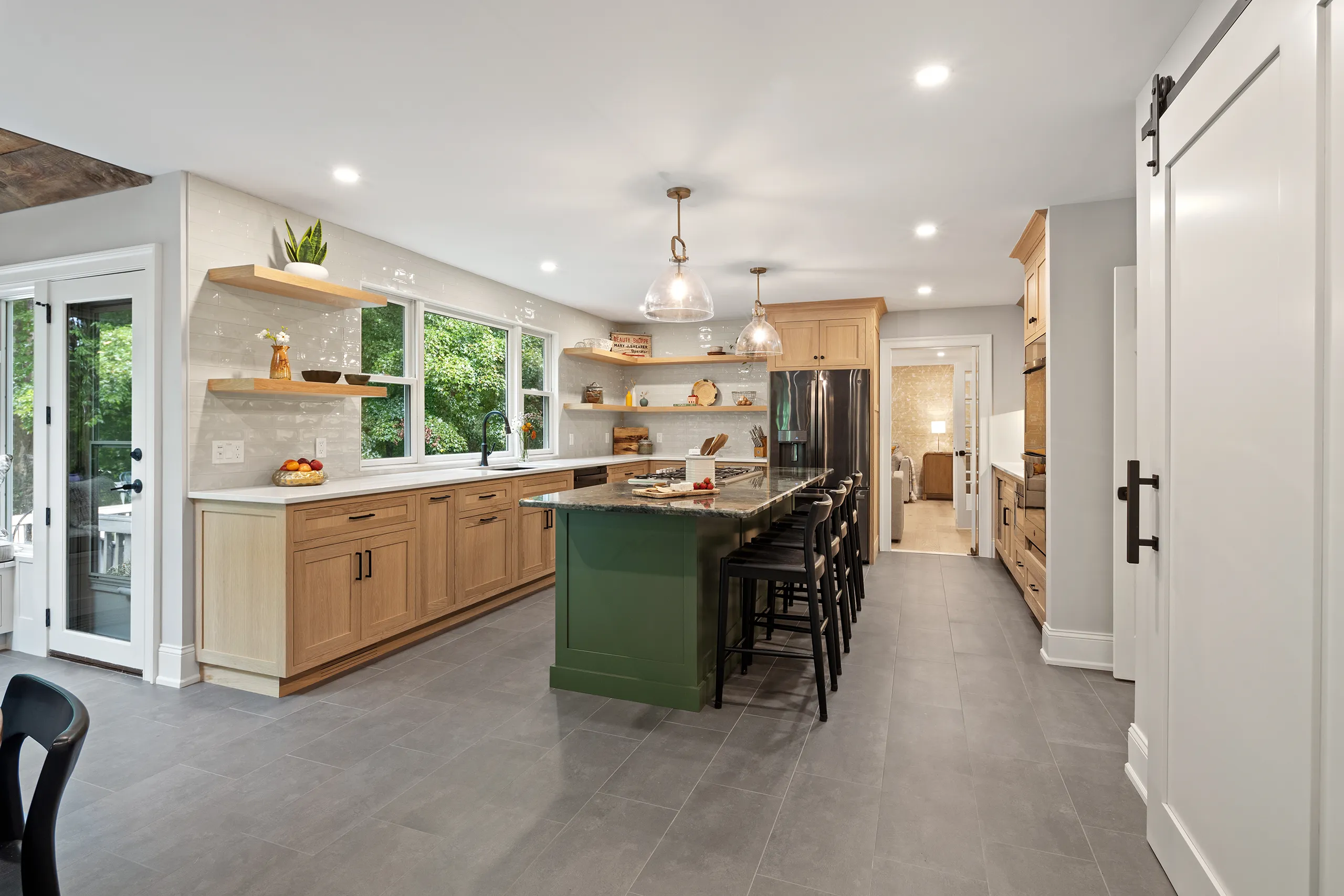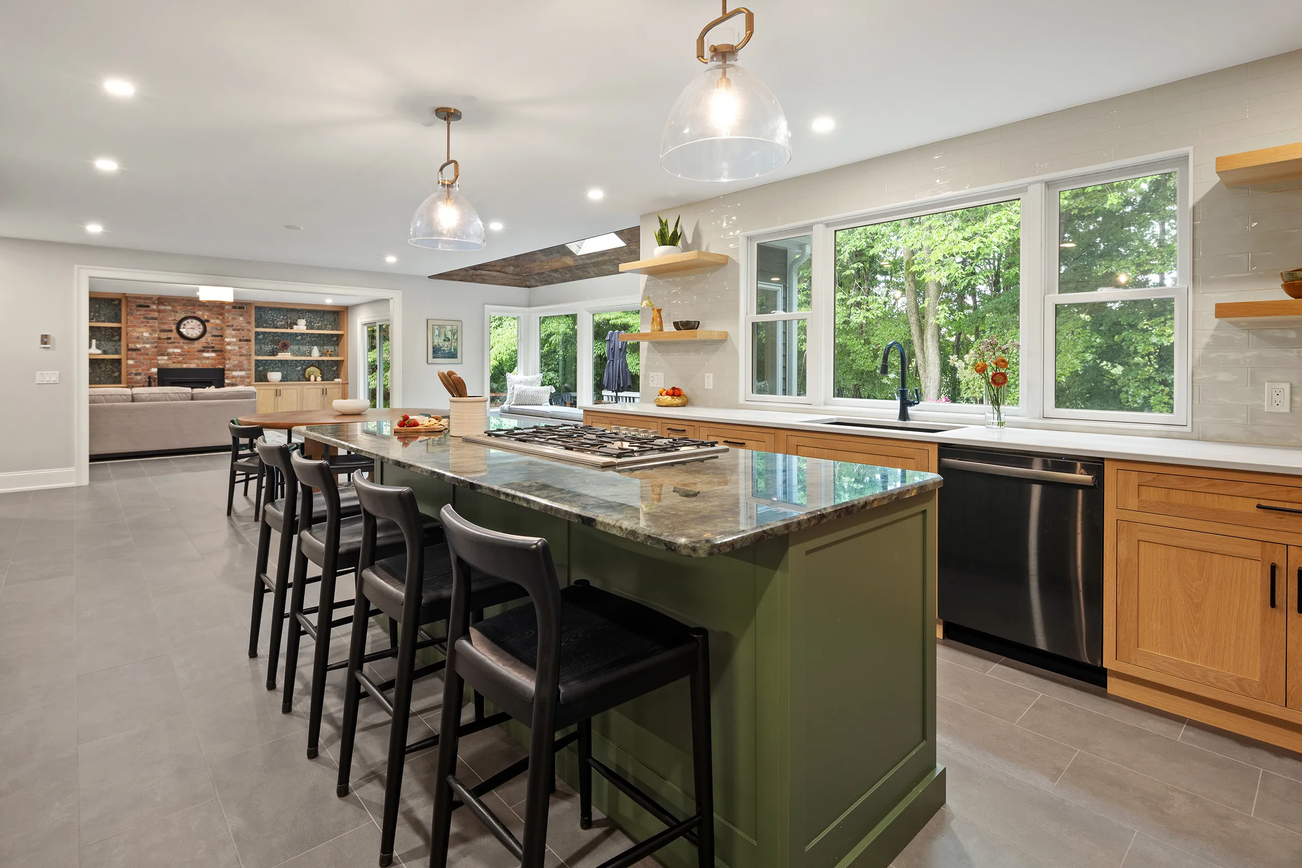 Phase One of this lakefront project transformed a dated residence into a restorative lakeside oasis. The home was fully gutted and reconfigured to embrace panoramic water views, with a modern layout and sustainable systems including geothermal and solar.