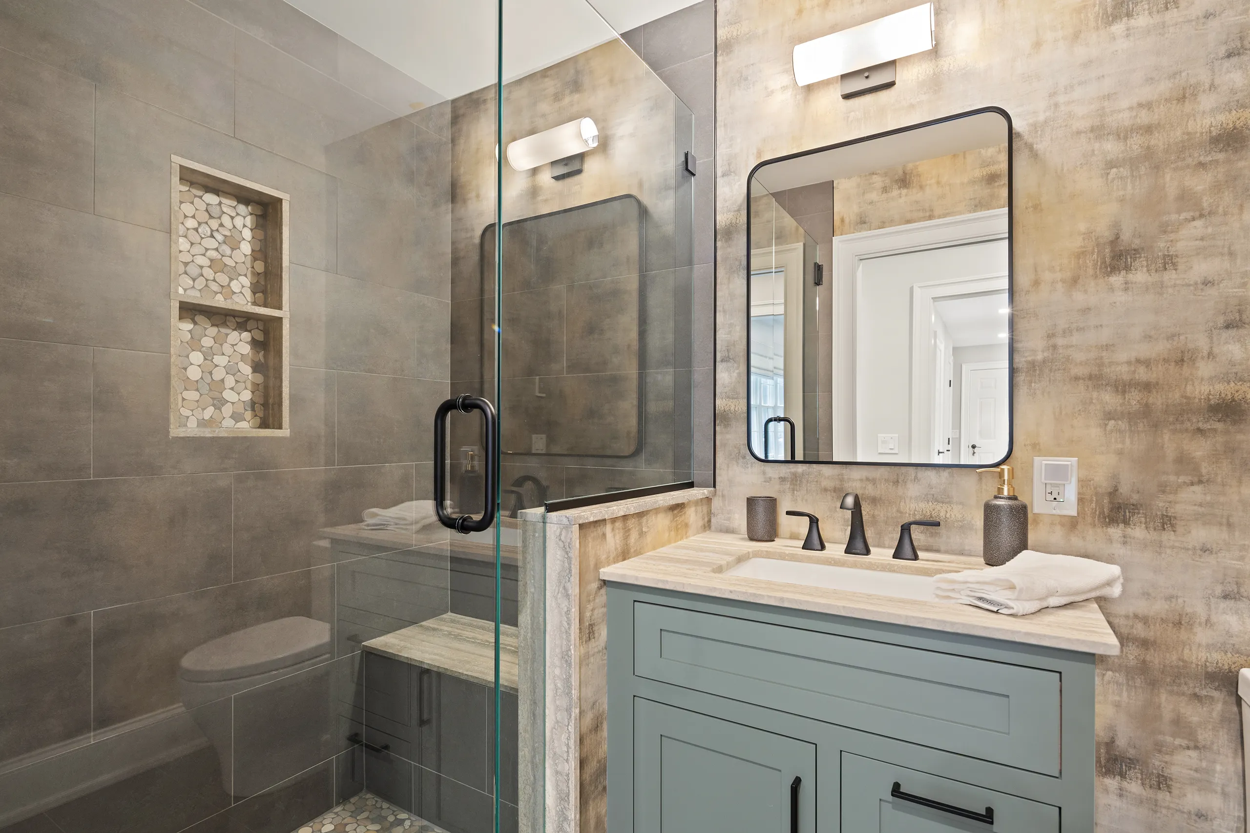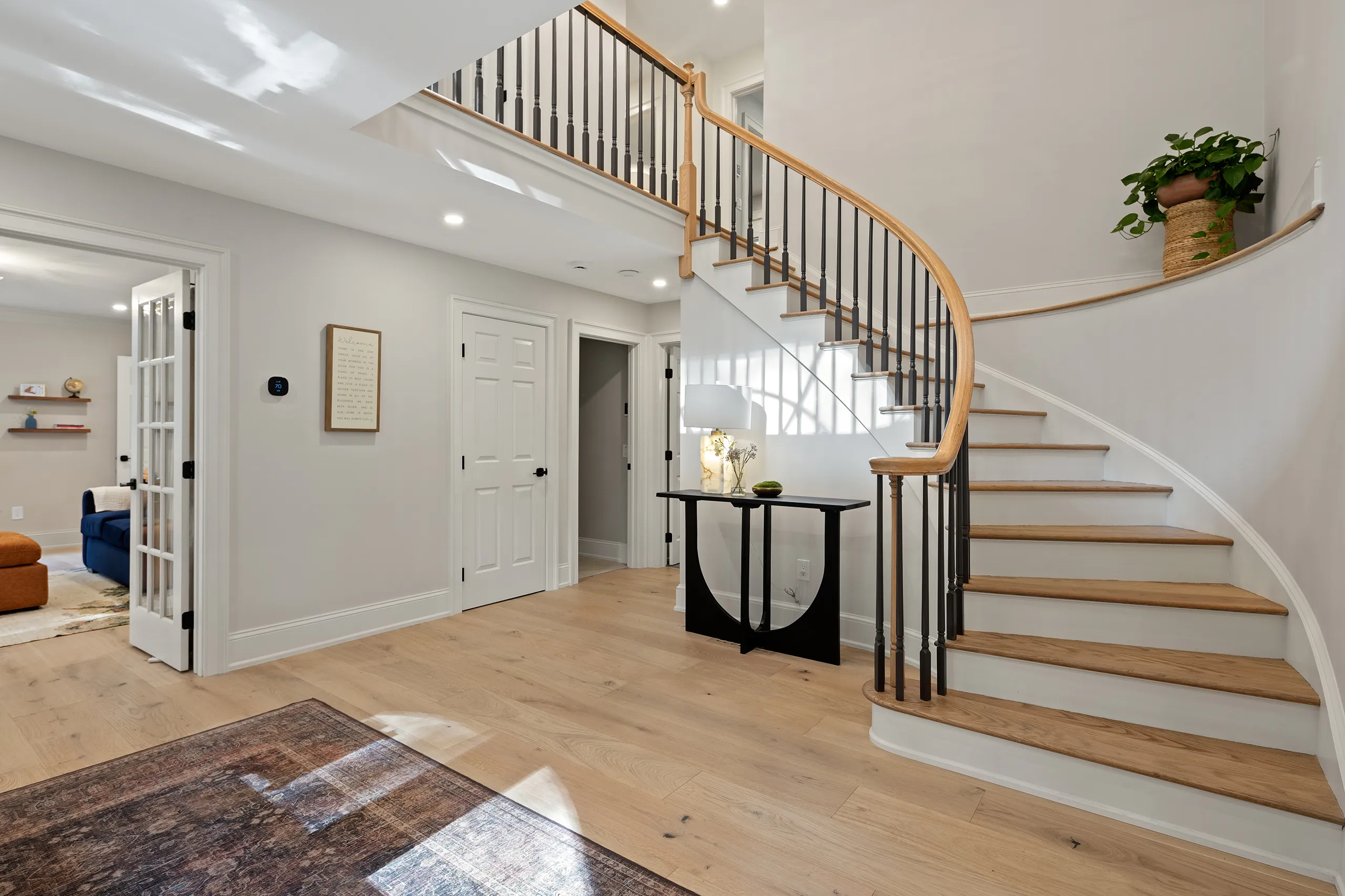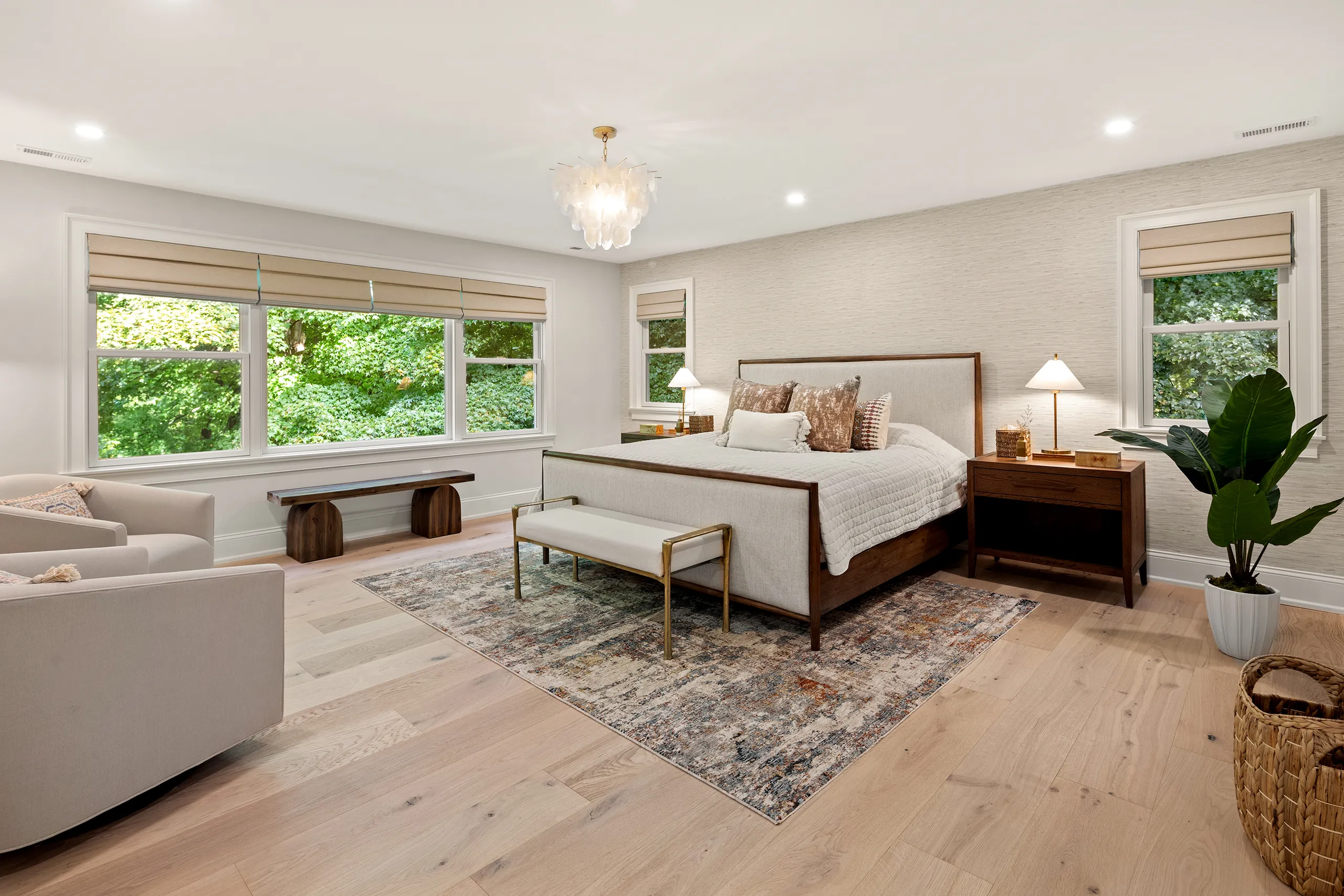 Phase One of this lakefront project transformed a dated residence into a restorative lakeside oasis. The home was fully gutted and reconfigured to embrace panoramic water views, with a modern layout and sustainable systems including geothermal and solar.