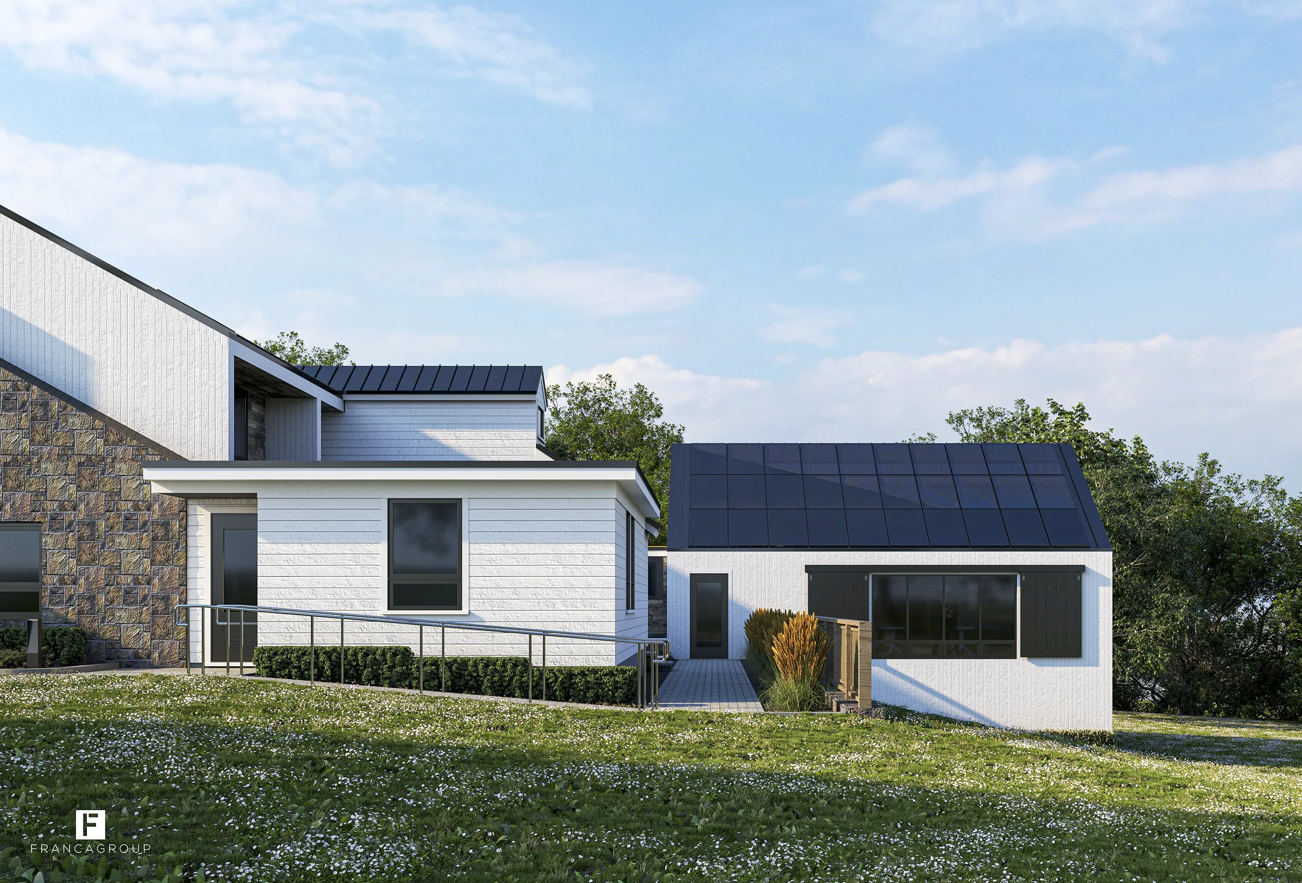 An architectural renewal of Ridgebury’s historic Meetinghouse, blending stone, wood, and glass to create light-filled spaces for gathering, reflection, and community.